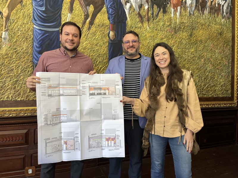O prefeito Carlos Delgado recebeu ontem (22), Geraldo Nogueira, sócio-administrador da franquia da rede Giraffas em Uruguaiana. Na oportunidade, Nogueira apresentou o projeto da unidade do grupo para a cidade. O encontro também foi acompanhado pela arquiteta responsável, Gabriela Cadinanos.