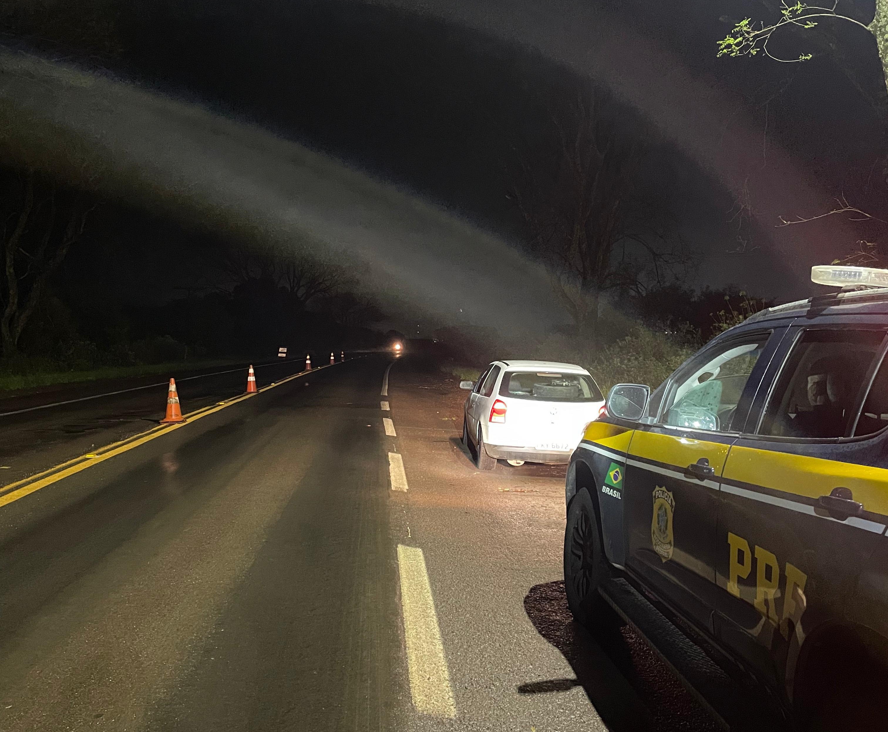 Durante fiscalização de trânsito, os policiais abordaram um Gol com placas de Macaé/RJ. Após consultar os sistemas, os PRFs identificaram que havia um mandado de prisão em aberto por crime de tráfico de drogas contra o motorista, expedido pela Vara Criminal de Uruguaiana/RS na sexta-feira (25).