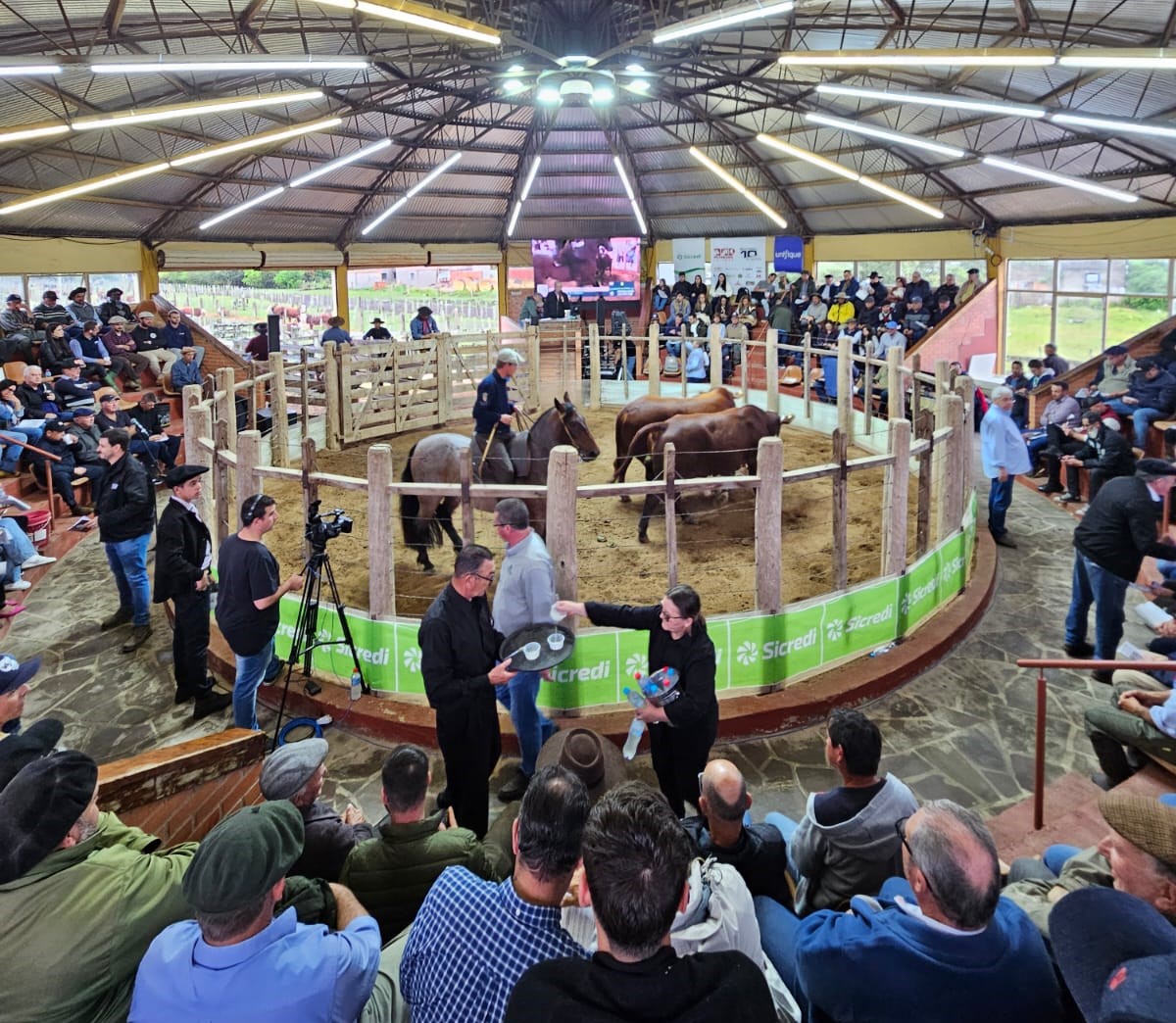 O leilão anual conjunto da Estância Santa Tereza, de Arambaré (RS), e da Estância Madrinha, de Camaquã (RS), no Sindicato Rural de Camaquã, reuniu casa cheia e liquidez total.