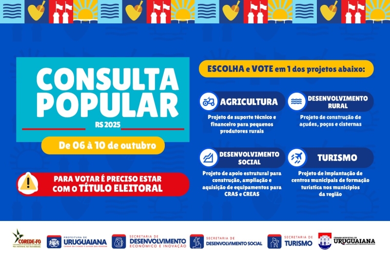 Além disso, quanto maior a participação dos eleitores de Uruguaiana, maior é a chance de que os projetos do nosso município sejam contemplados.