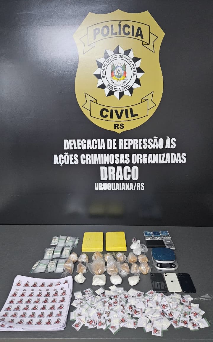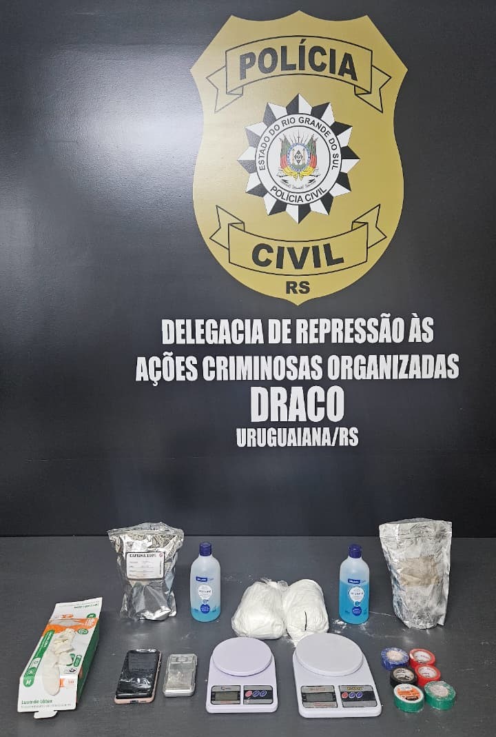 Na noite de ontem (07), a Polícia Civil, por meio dos agentes da DRACO de Uruguaiana e com apoio do efetivo da Operação Protetor de Divisas e Fronteiras, coordenados pelo Delegado Nilson de Carvalho, estourou laboratório de preparo de drogas, apreendendo 2 prensas hidráulicas, 3,5 kg de cocaína e crack e prendendo 4 pessoas em flagrante. As drogas possuem valor de mercado de cerca de R$ 260 mil.
