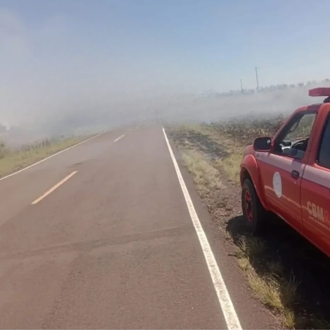 Na tarde de ontem (21), o Corpo de Bombeiros Militar do Rio Grande do Sul (CBMRS), por meio do 13° Batalhão de Bombeiro Militar / Grupamento Barra do Quaraí, foi acionado para o combate a um incêndio em vegetação às margens da BR-472, nas proximidades da localidade de Guterres.