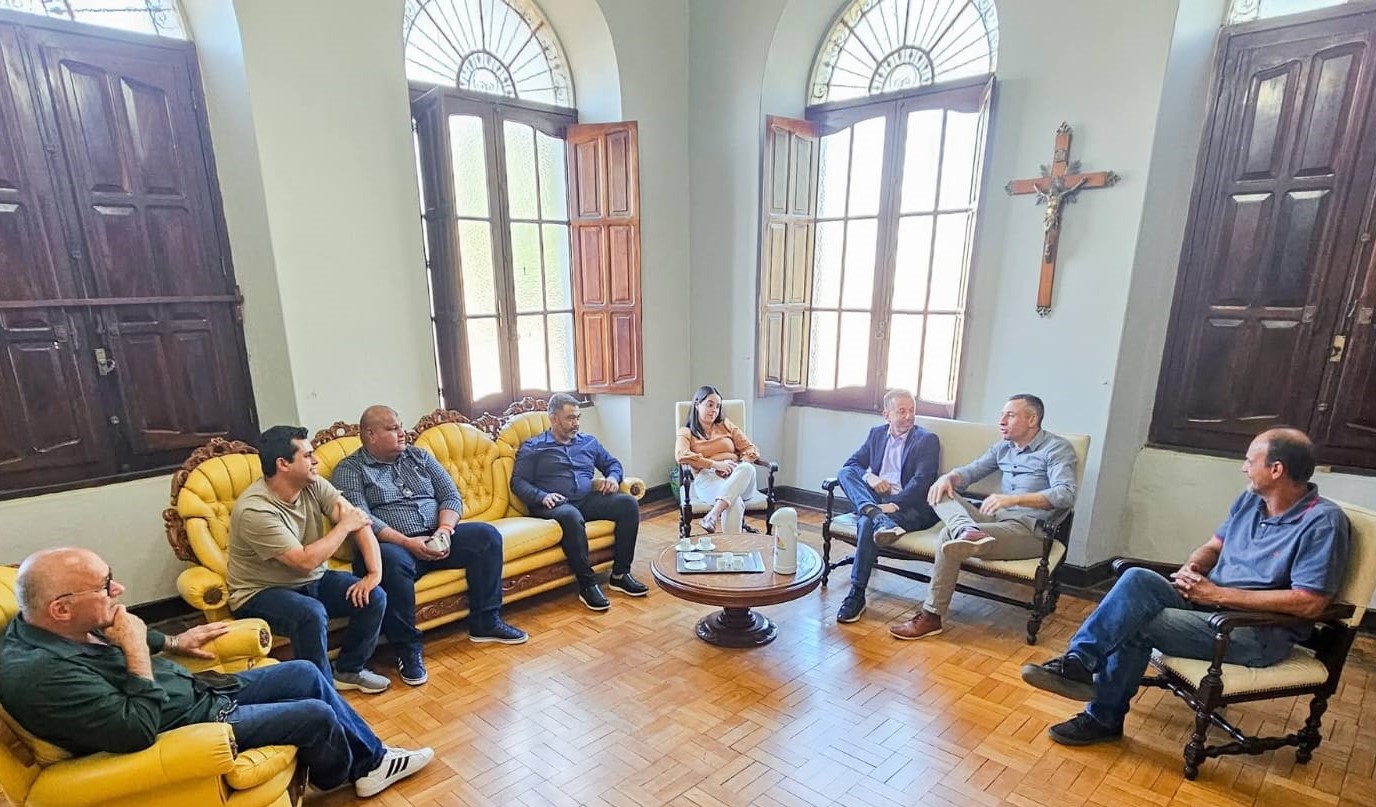 Na sequência, o prefeito Maher Jaber, acompanhado do secretário de Obras, Transporte e Trânsito de Barra do Quaraí, Rafael Fialho, do auxiliar administrativo Mateus Ortiz e do vereador Danilo Rodrigues, reuniu-se com o prefeito Leonardo Betin e o vice-prefeito Clóvis Ravarotto Corrêa.