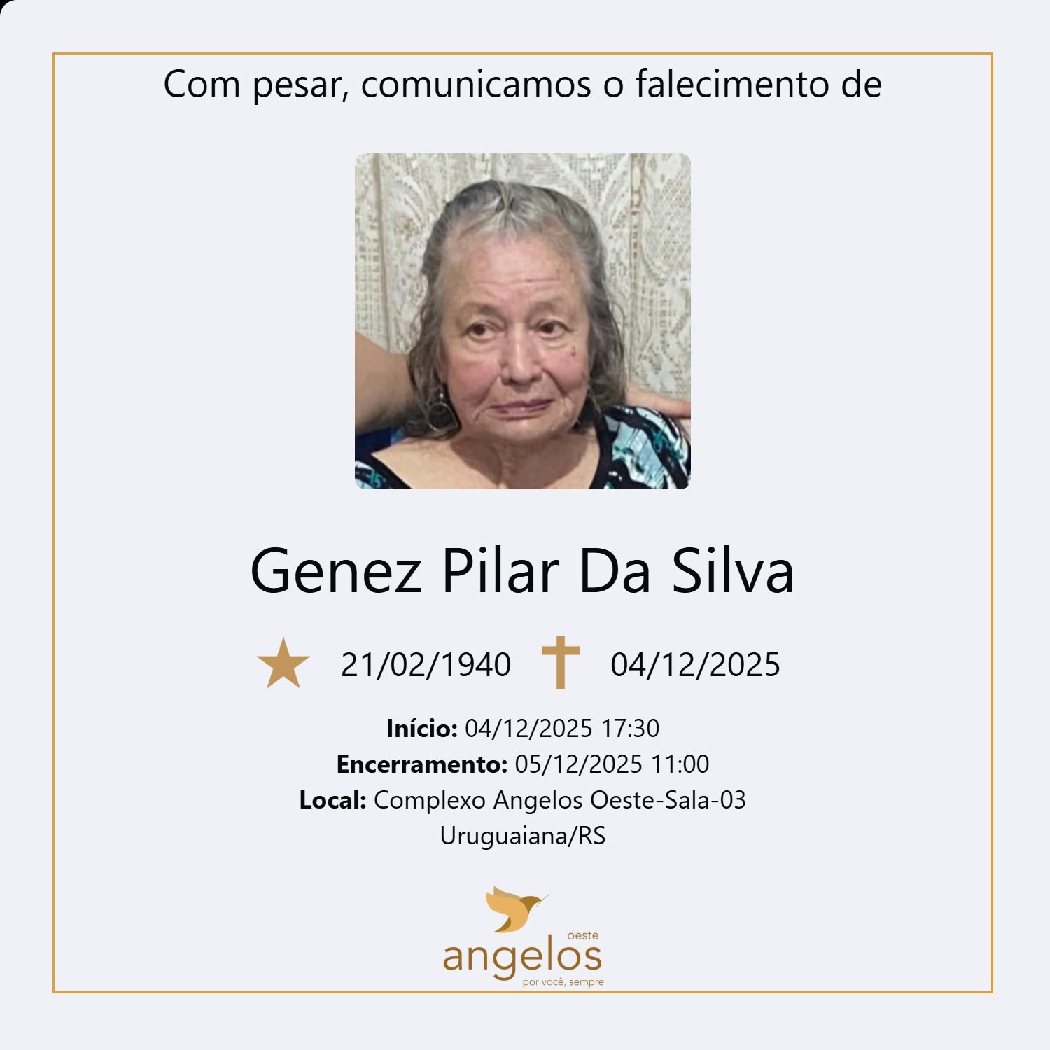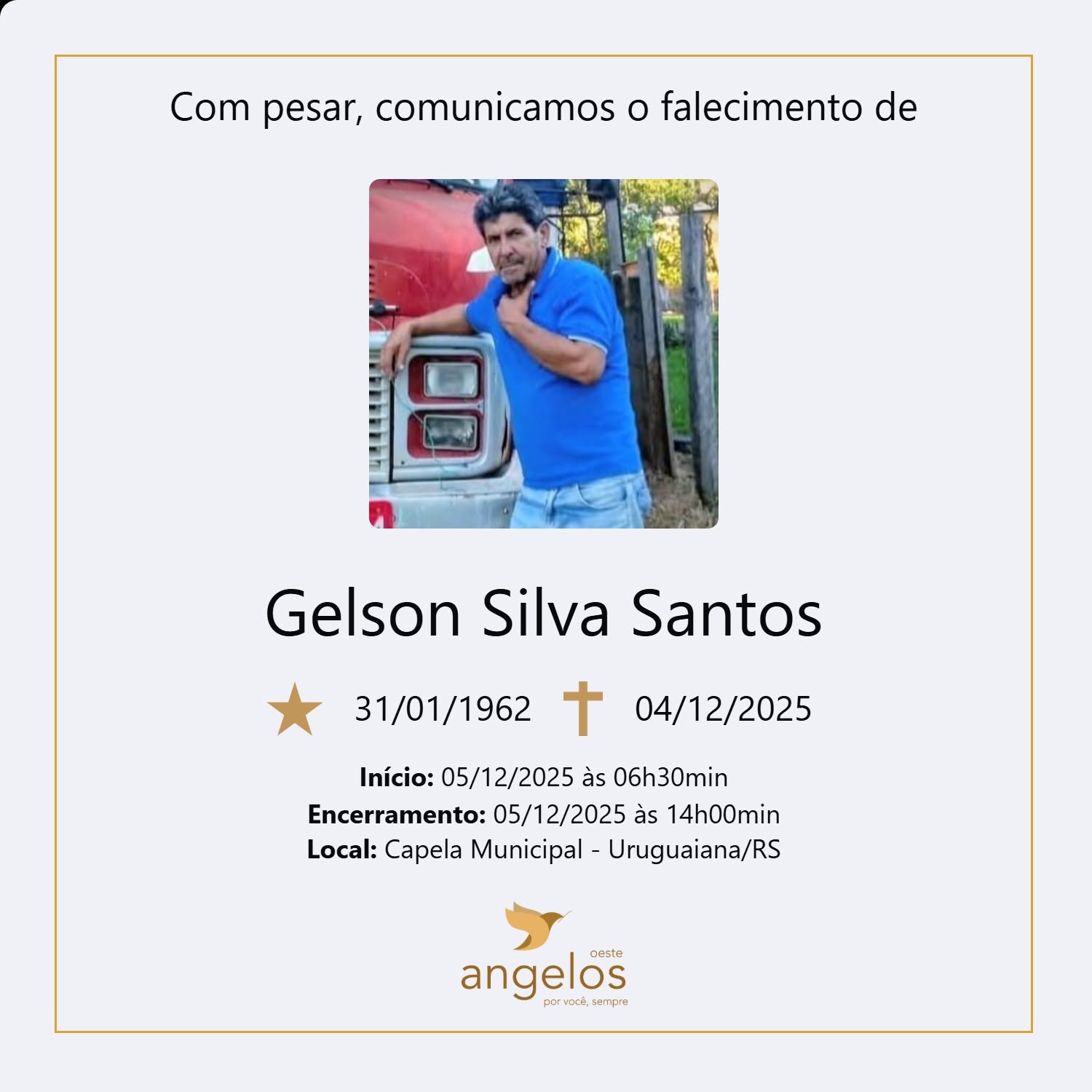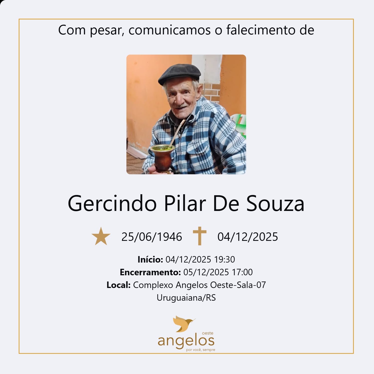 Sepultamento: 05/12 | 16h | Cemitério Municipal de Uruguaiana
