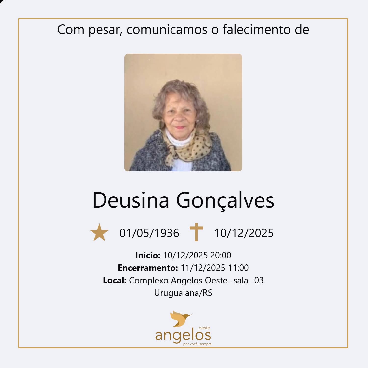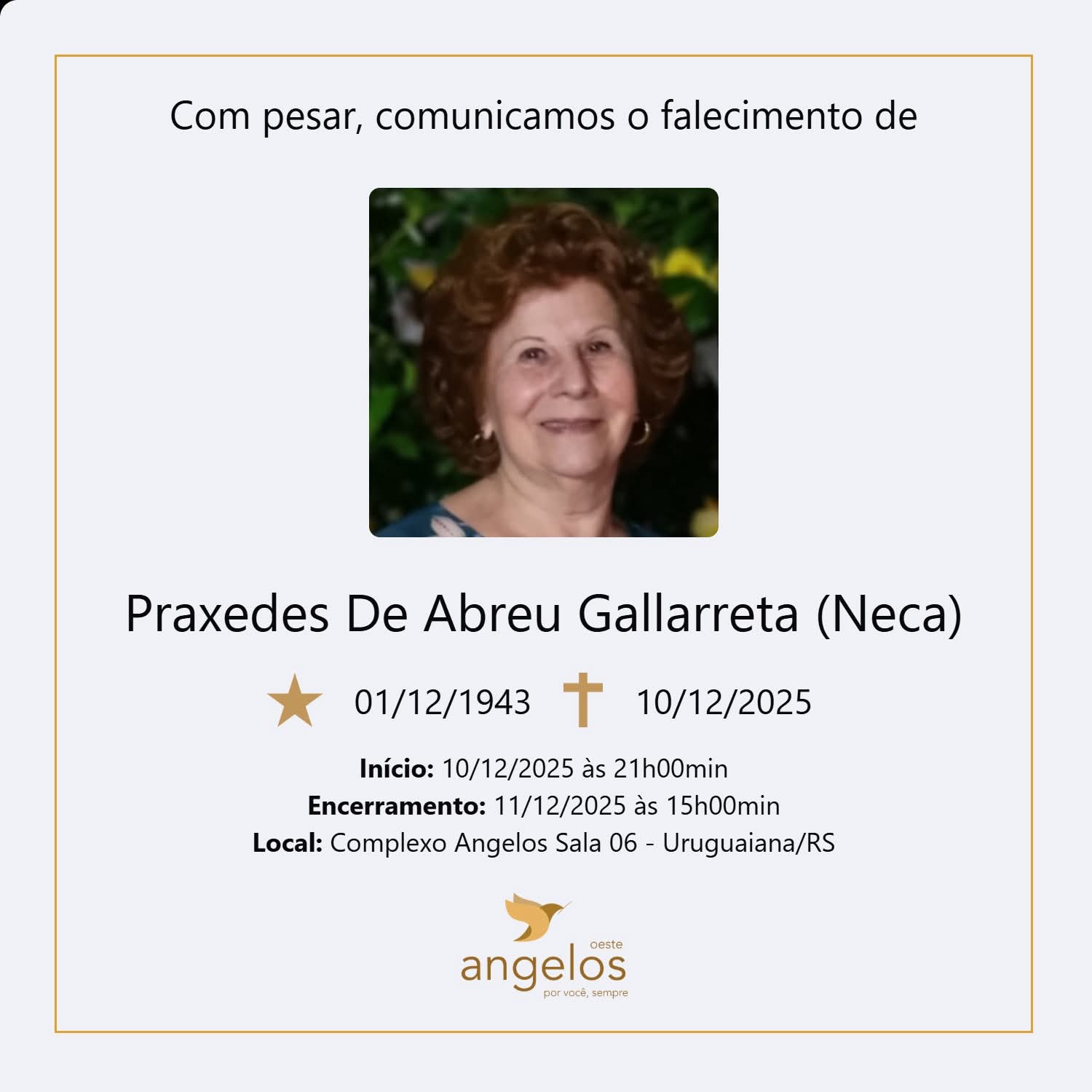 Sepultamento: 11/12 | 10h | Cemitério Municipal de Uruguaiana