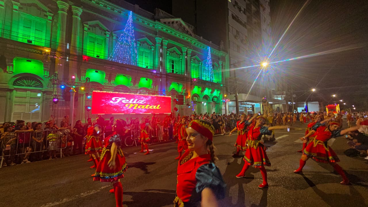 Na noite de ontem (14/12), Uruguaiana viveu mais um daqueles momentos que ficam guardados na memória das pessoas. A segunda edição do Desfile Temático de Natal tomou conta do entorno da Praça Barão do Rio Branco e reuniu mais de 20 mil pessoas, que acompanharam de perto um espetáculo pensado para emocionar, aproximar e reforçar o sentido de comunhão. Com o tema “Um Presente de Natal”, o desfile dialogou com a decoração natalina que ilumina a cidade desde o dia 21/11, ampliando a sensação de encanto e criando um ambiente ainda mais envolvente para famílias uruguaianenses, bem como, para os turistas.