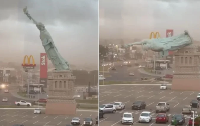 A ventania que atingiu a Região Metropolitana na tarde desta segunda-feira (15) causou diversos estragos. Um dos mais emblemáticos foi a queda da réplica da Estátua da Liberdade que fica em frente à loja da Havan na cidade de Guaíba.