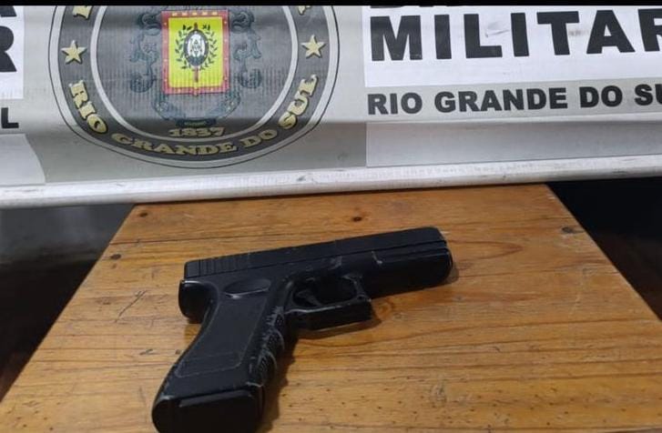 Uma guarnição da Brigada Militar atendeu, por determinação do Centro de Operações da Polícia Militar (COPOM), uma ocorrência envolvendo um objeto semelhante a uma arma de fogo em um estabelecimento comercial de Uruguaiana.