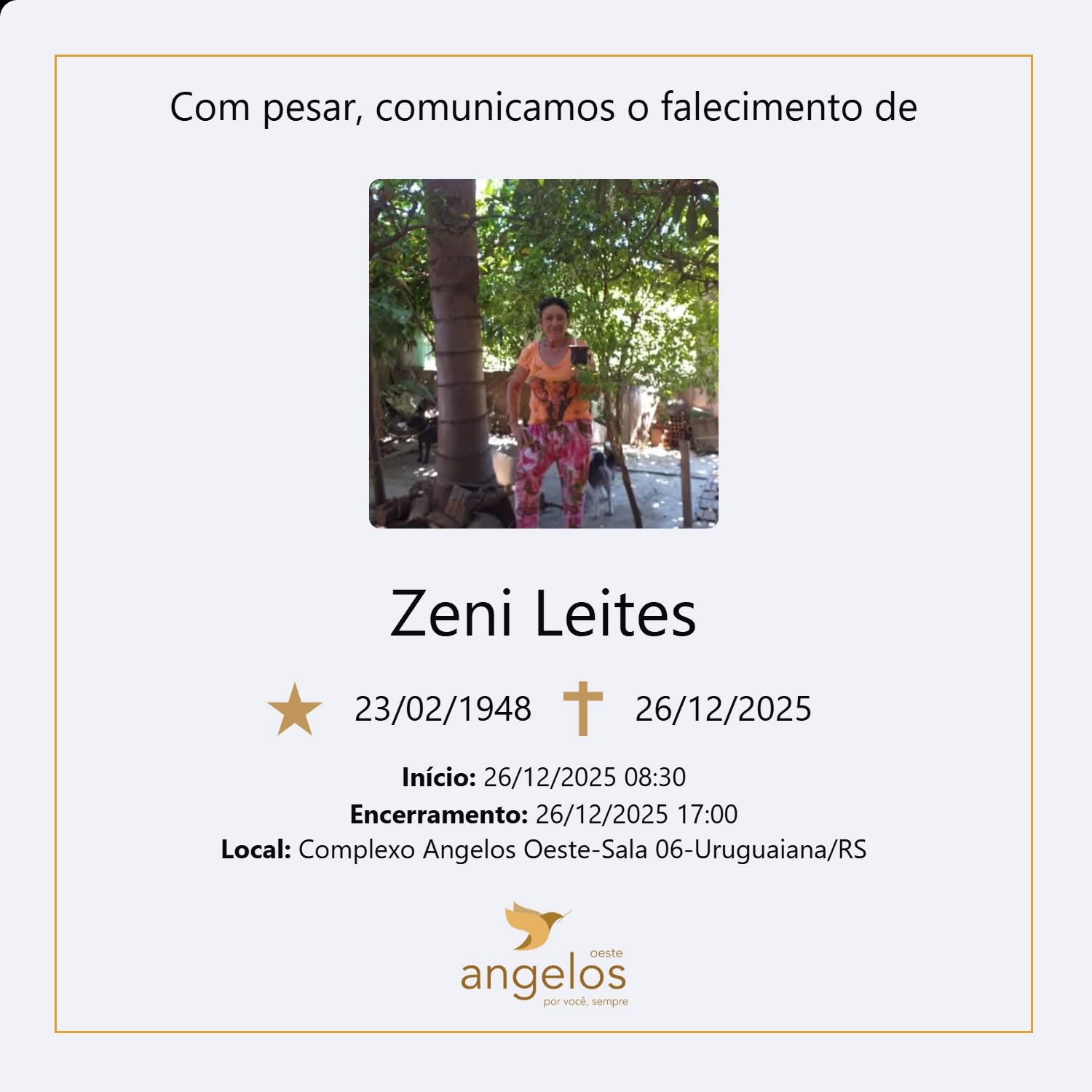 Sepultamento: 26/12 | 10h | Cemitério Municipal de Uruguaiana