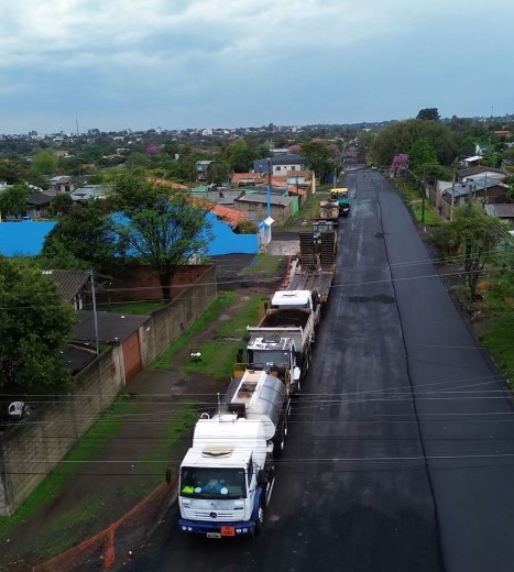 Na oportunidade o estado apoia com recurso e a Prefeitura executa. Já foram feitos 1,5km de melhorias de um total de 1,8km que o projeto comporta. Também está em andamento a obra na Rua Alcides Trein, no bairro Cidade Nova. A iniciativa está em fase de imprimação após colocação da base e o asfaltamento está previsto para o início de janeiro de 2026.