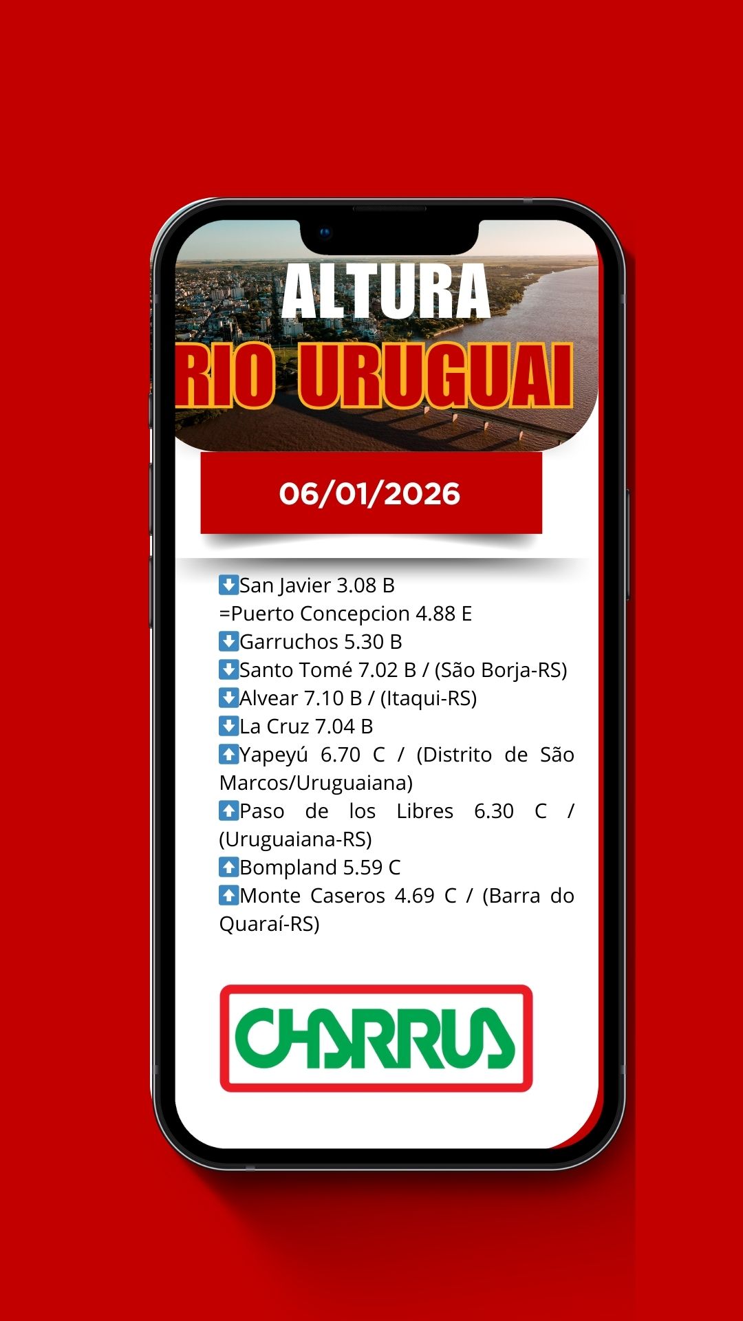 Rio Uruguai: boletim diário da Rádio Charrua traz dados de San Javier a Monte Caseros