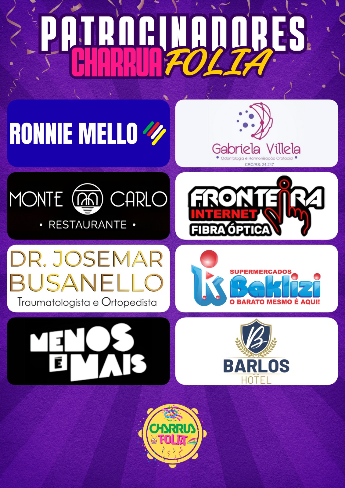 Fechando o time de convidados, o Charrua Folia recebeu Fernando Bermúdez, o Balaka, produtor local de grandes eventos carnavalescos. À frente da Balaka Eventos, ele é o responsável pela produção dos shows Menos é Mais e Turma do Pagode em Uruguaiana, além de camarotes que levam sua marca.