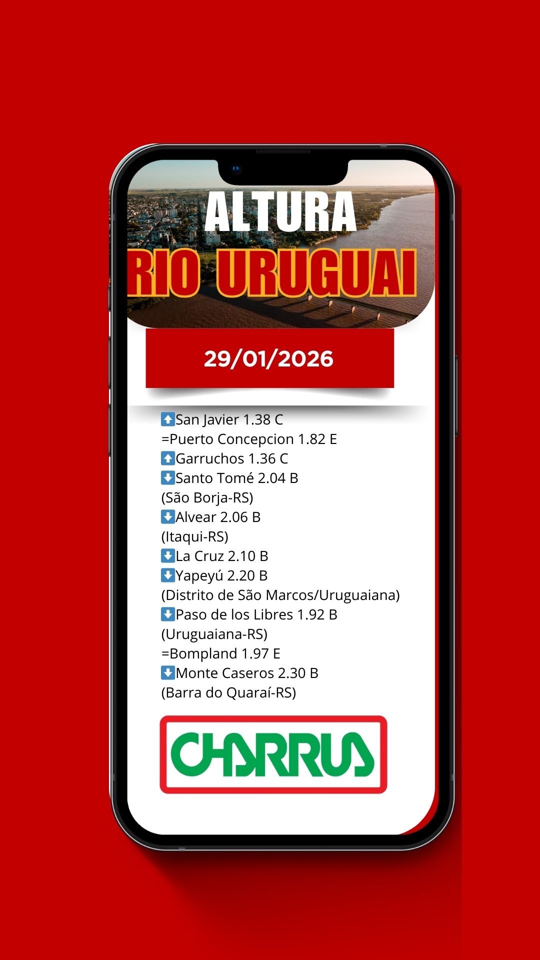 Rádio Charrua informa: nível do Rio Uruguai nas cidades da Fronteira Oeste, de San Javier a Monte Caseros