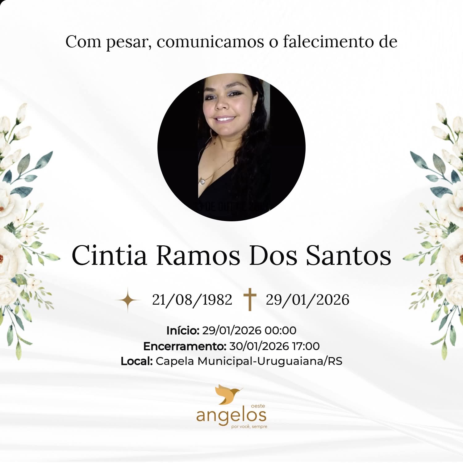 ▪️Sepultamento: 28/01 | 18h | Cemitério Municipal da Barra do Quaraí