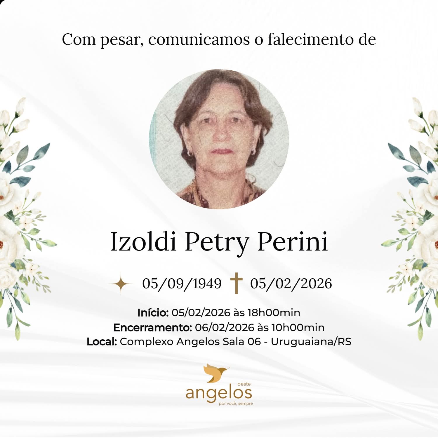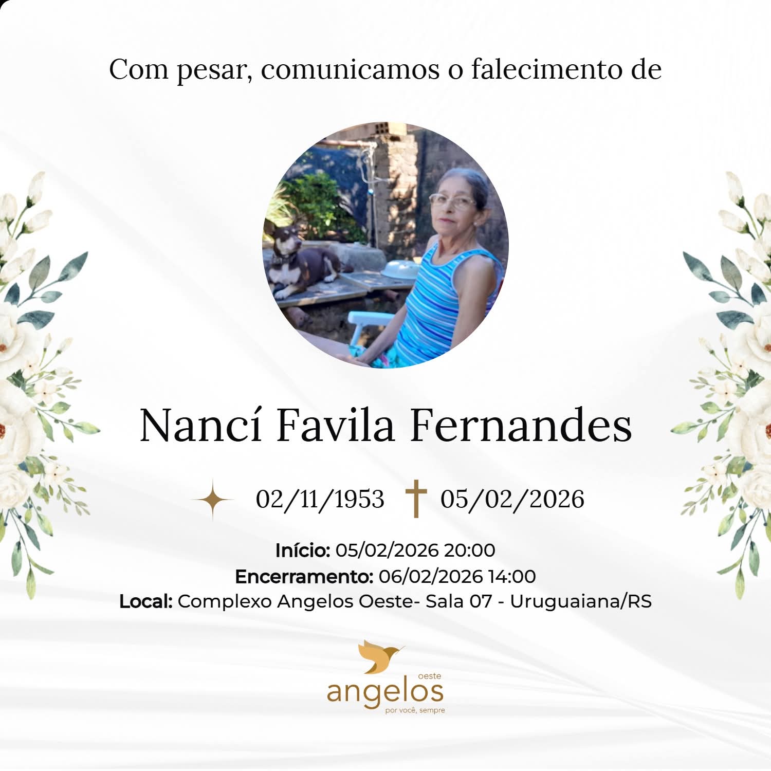 ▪️Sepultamento: 06/02 | 11h | Cemitério Municipal de Uruguaiana
