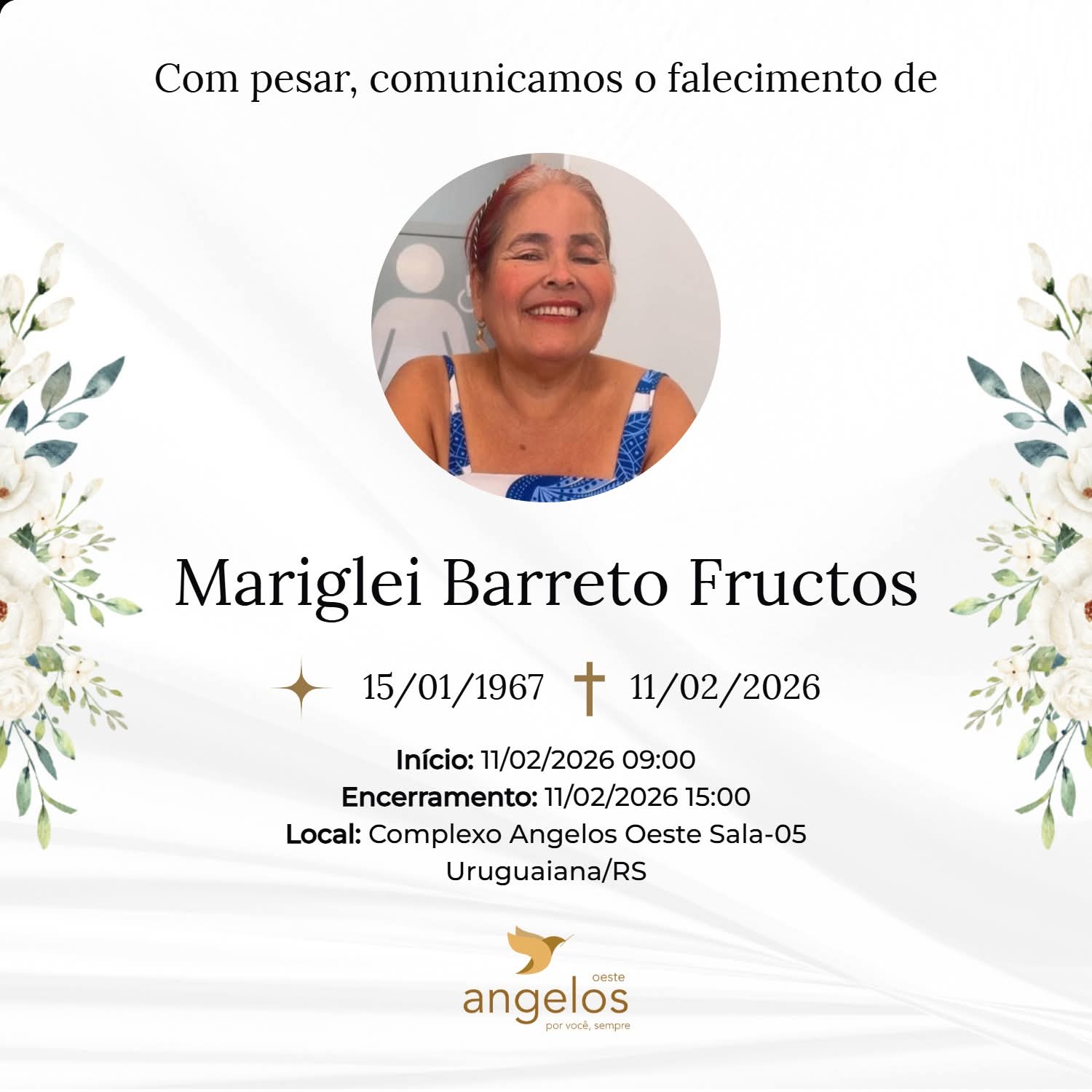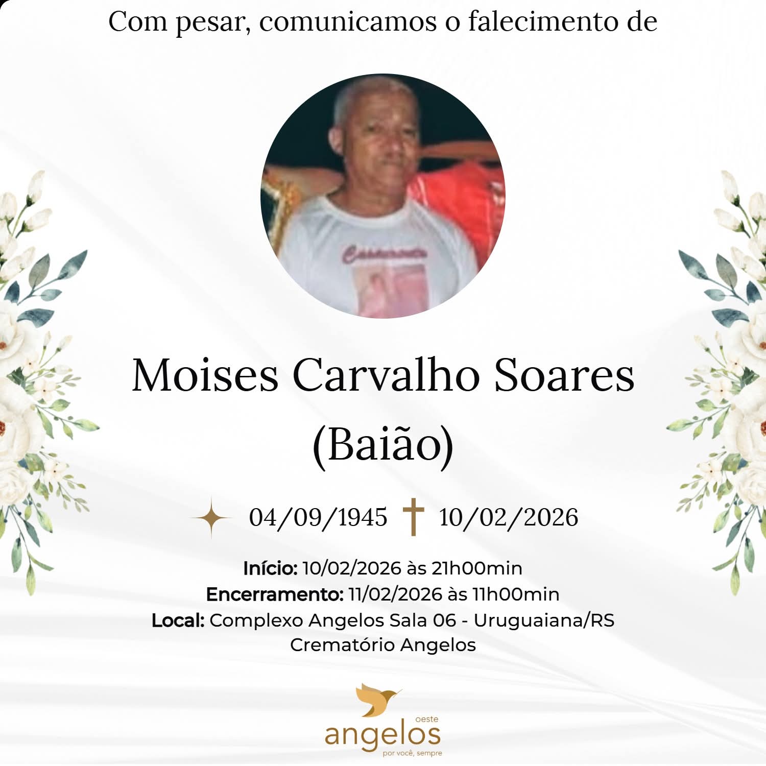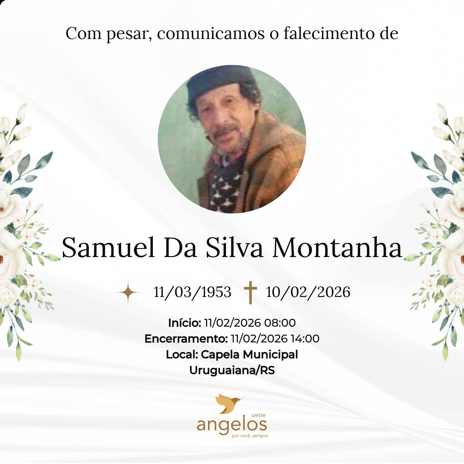 ▪️Sepultamento: 11/02 | 17h | Cemitério Municipal de Uruguaiana