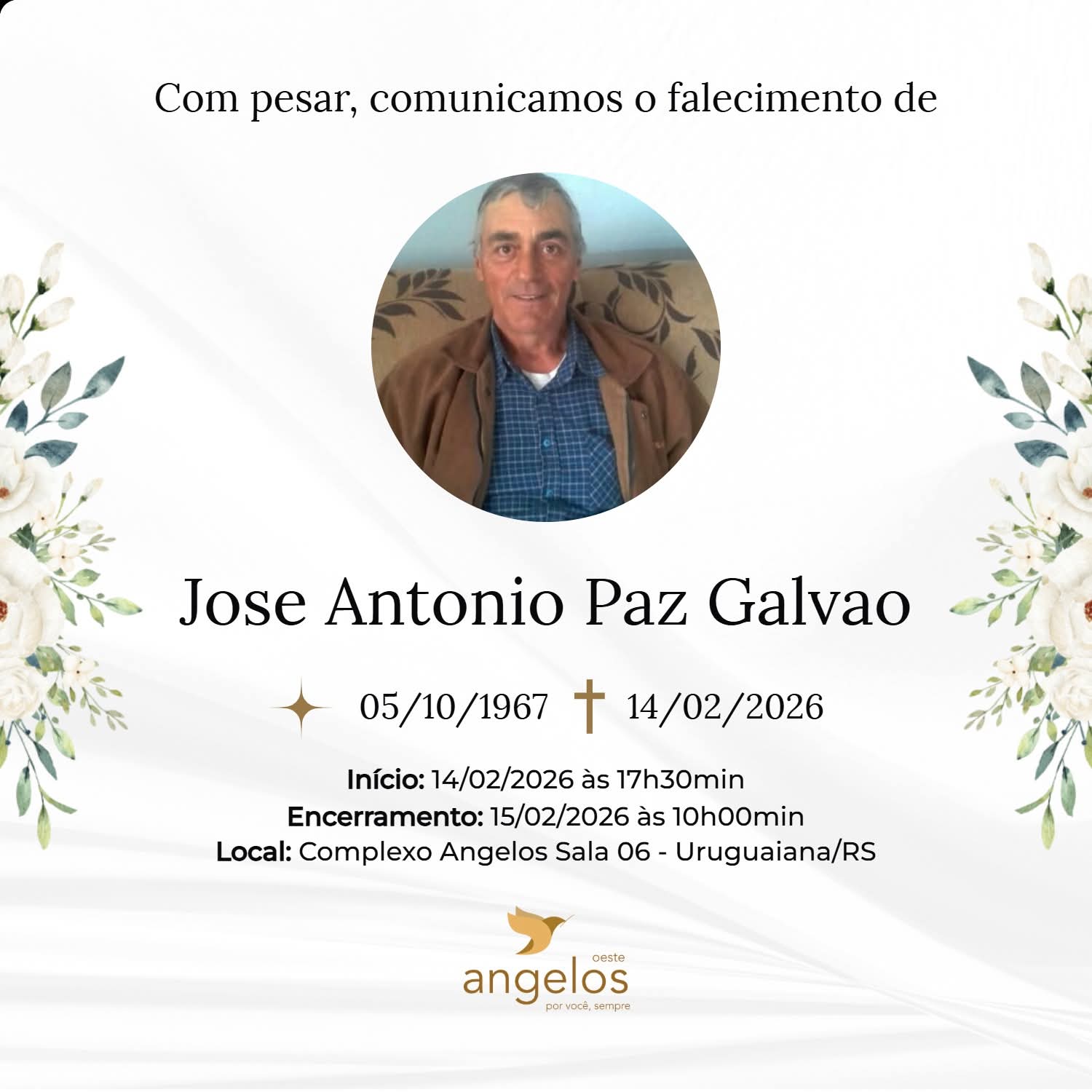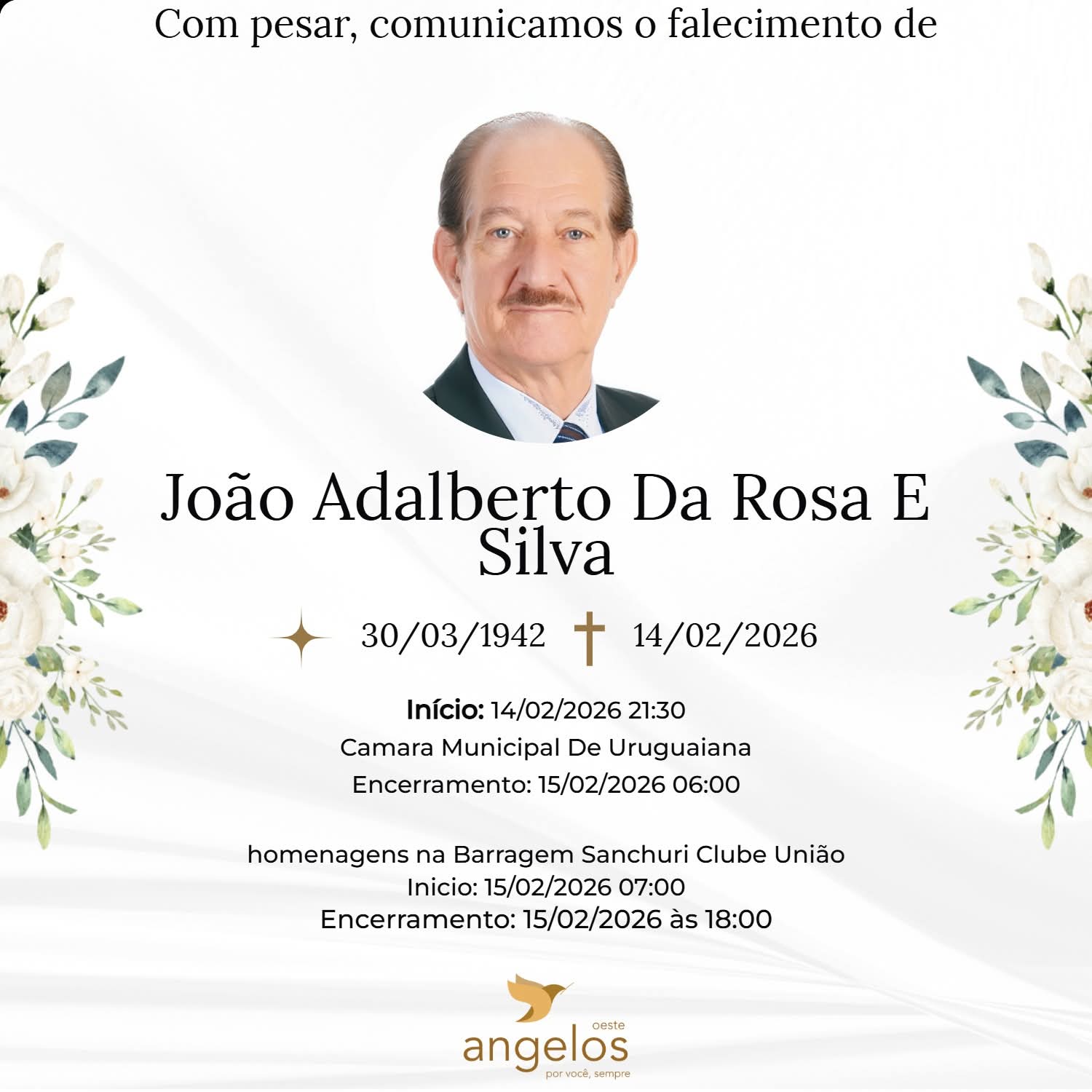 ▪️Sepultamento: 15/02 | 11h | Cemitério Municipal de Uruguaiana