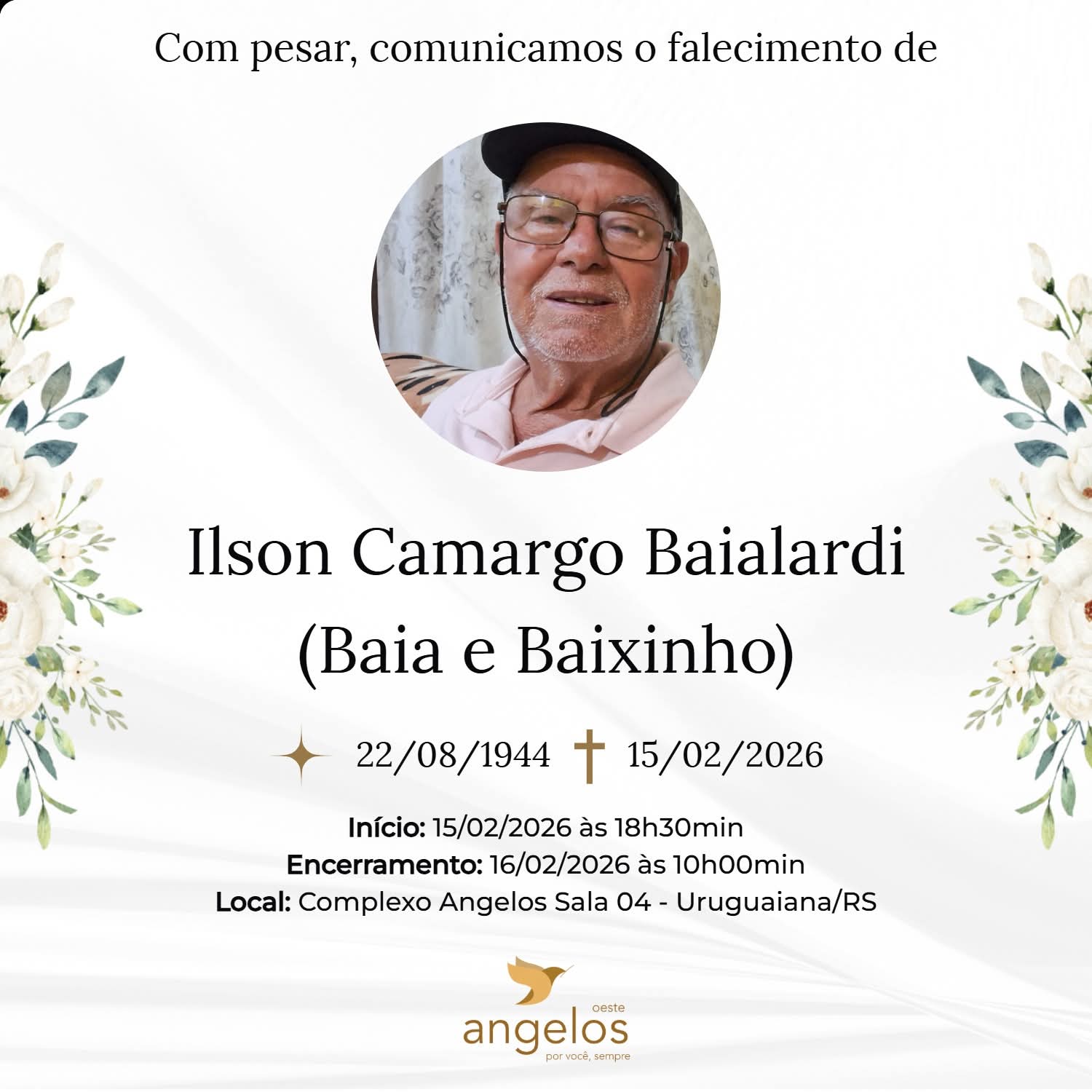 ▪️Sepultamento: 16/02 | 17h | Cemitério Municipal de Uruguaiana