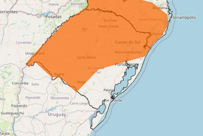 O comunicado também abrange boa parte de Santa Catarina e área do sul do Paraná.