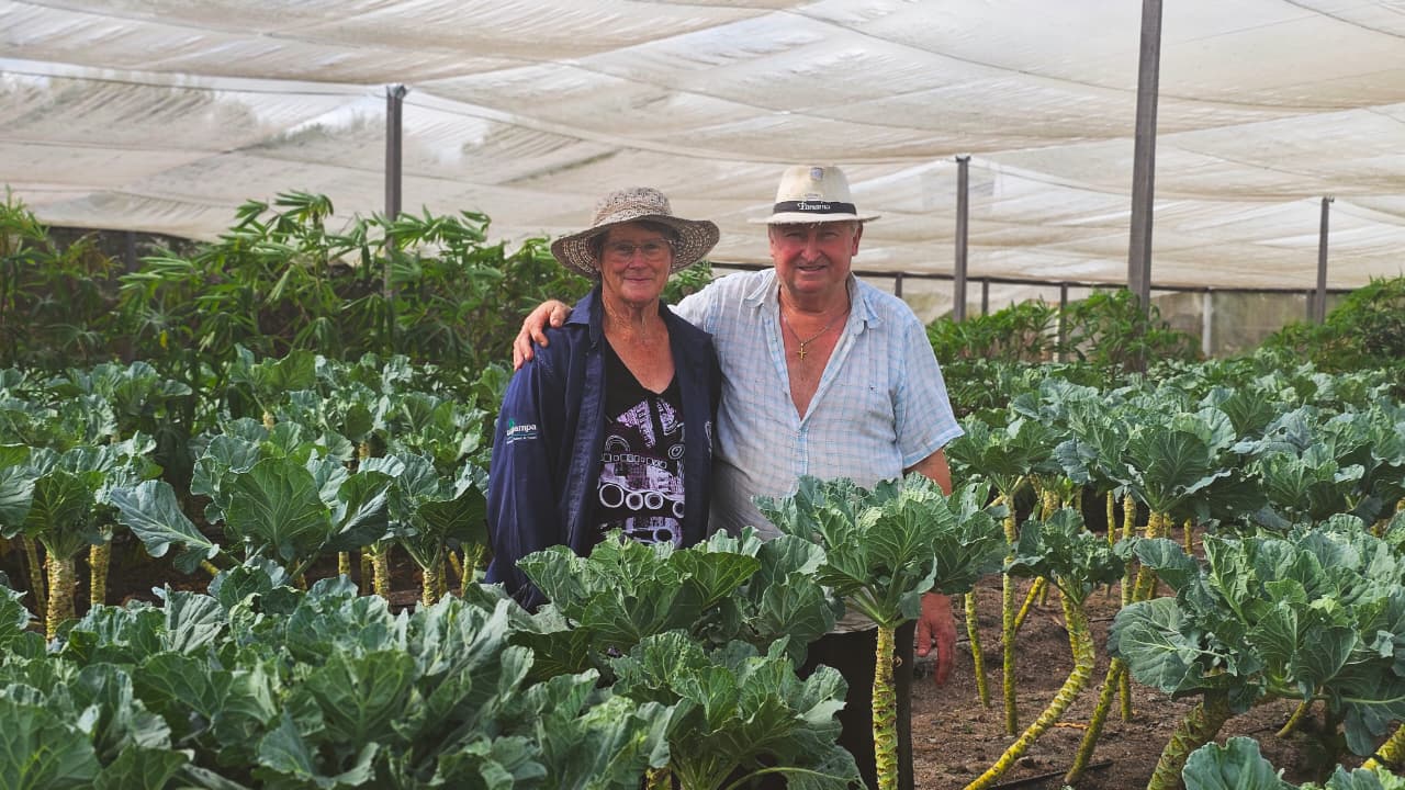 Em três hectares que muita gente chama de pequeno, eles tiram grandezas. Entre 35 e 45 mil quilos de hortaliça por mês. Quase meio milhão por ano. Alface que abre verde e viçosa, couve firme, feijão que um dia disseram que não vingava ali.