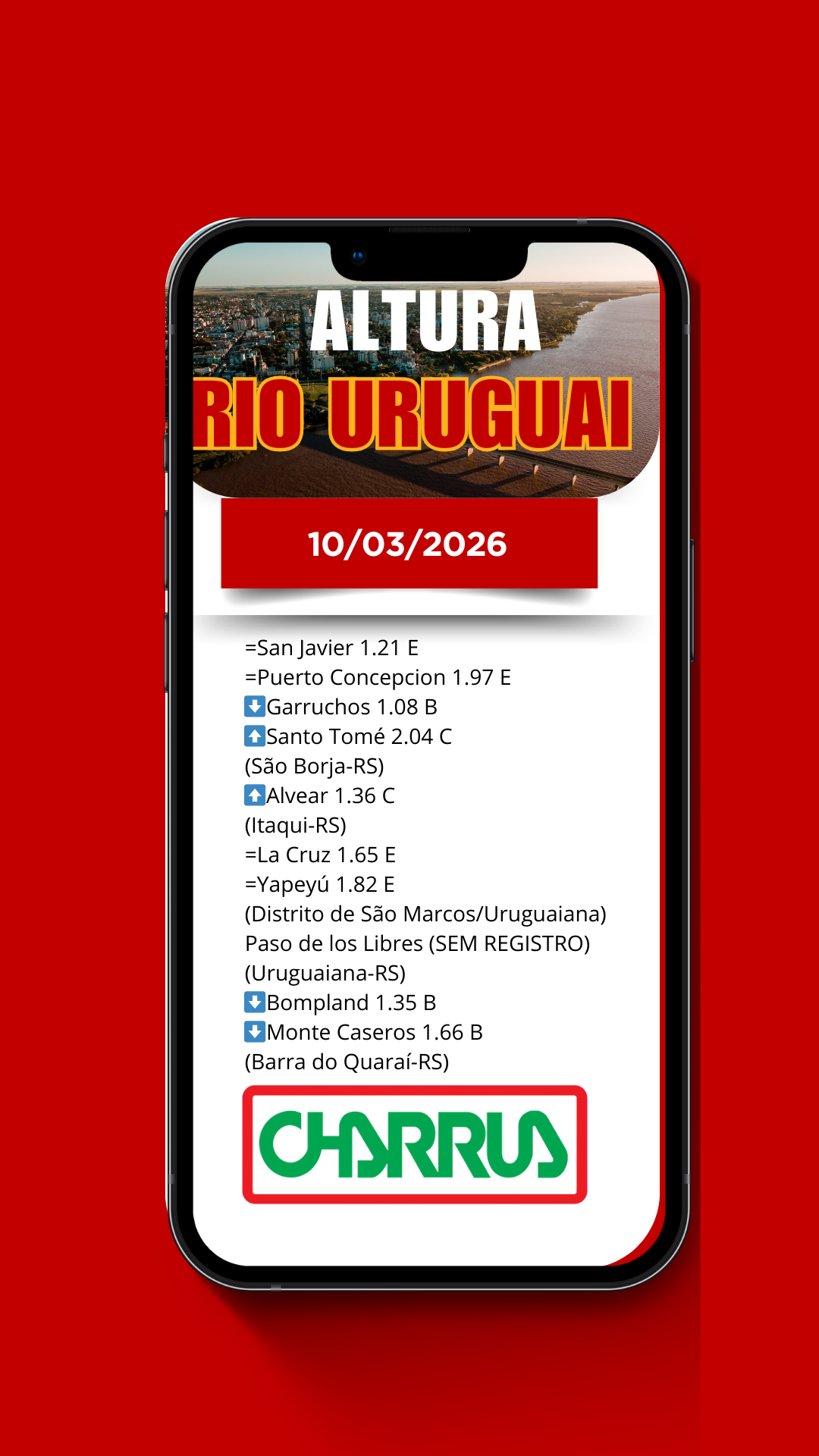 Rádio Charrua divulga boletim diário da altura do Rio Uruguai na Fronteira Oeste