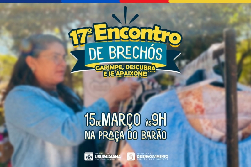 A Praça Barão do Rio Branco será sede da 17ª edição do Encontro de Brechós neste domingo (15/03). A atração ocorre a partir das 9h da manhã, na alameda com ligação à Rua Bento Martins. A feira conta com o apoio da Prefeitura de Uruguaiana, por meio da Secretaria Municipal de Desenvolvimento Econômico e Inovação (Semude).