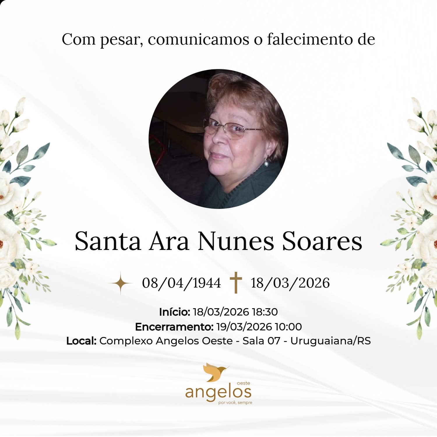 ▪️Sepultamento: 19/03 | 11h | Cemitério Municipal de Uruguaiana