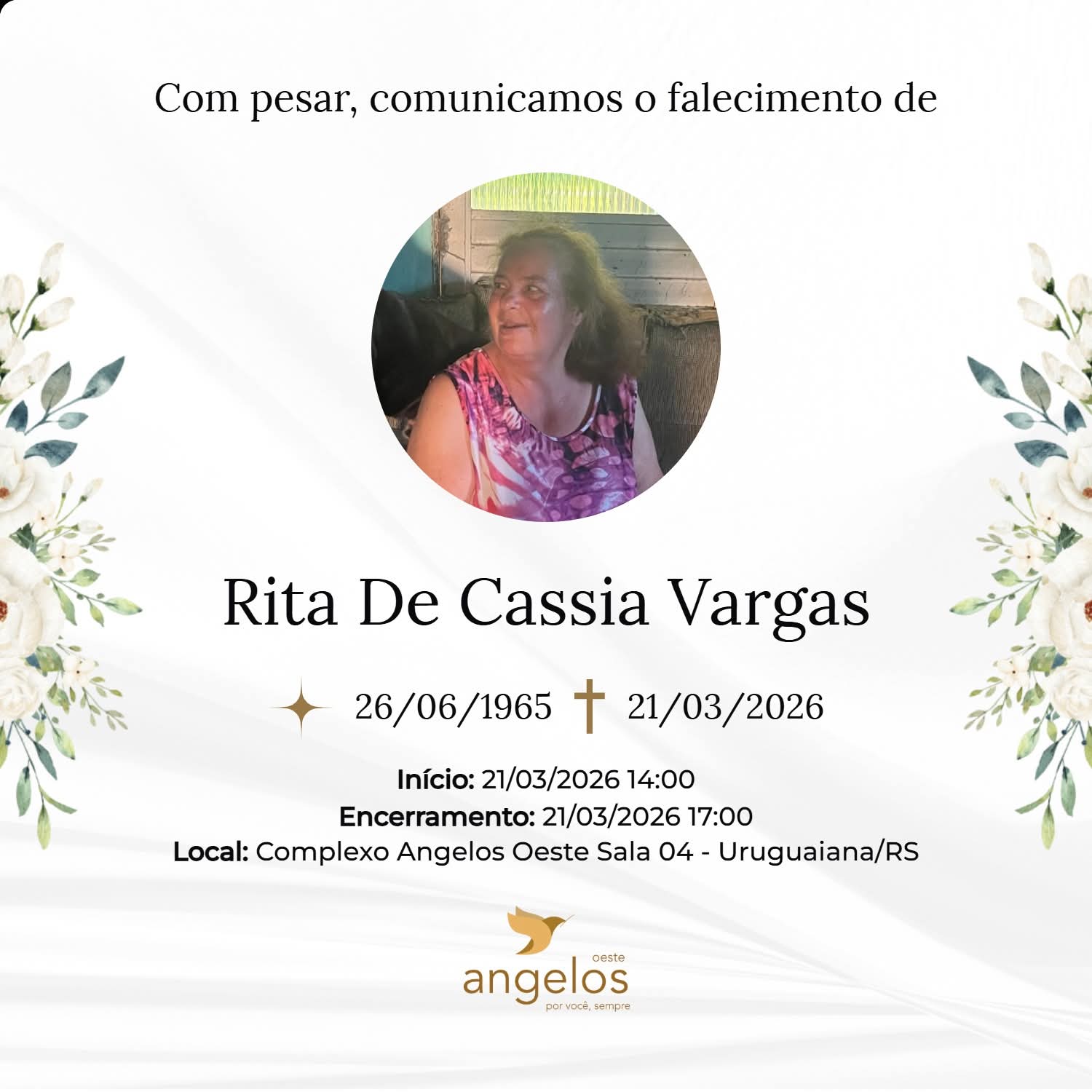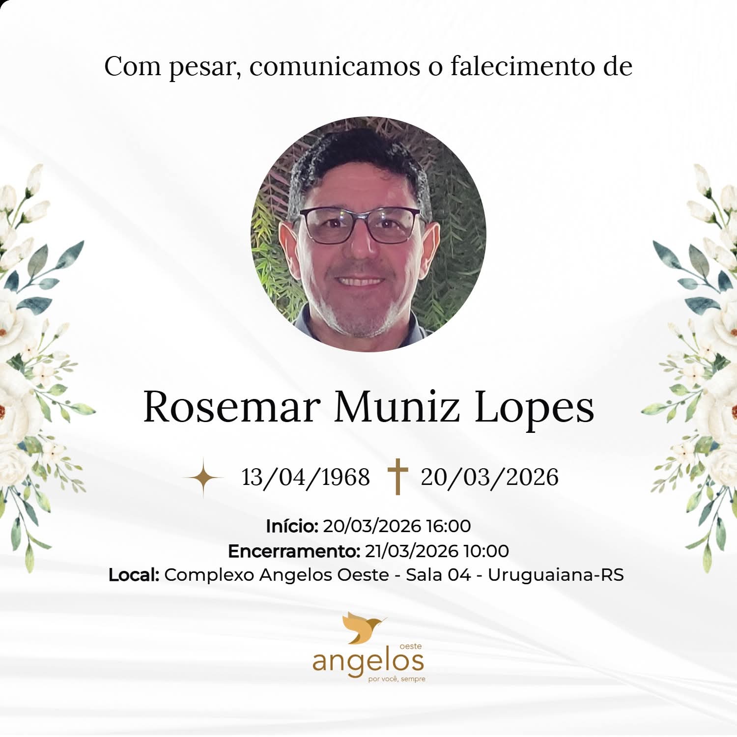 ▪️Sepultamento: 21/03 | 11h30min | Cemitério Municipal de Uruguaiana