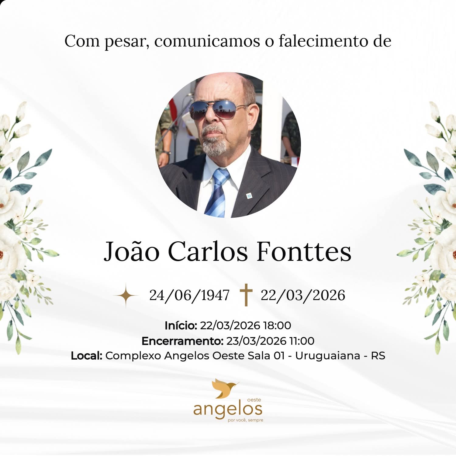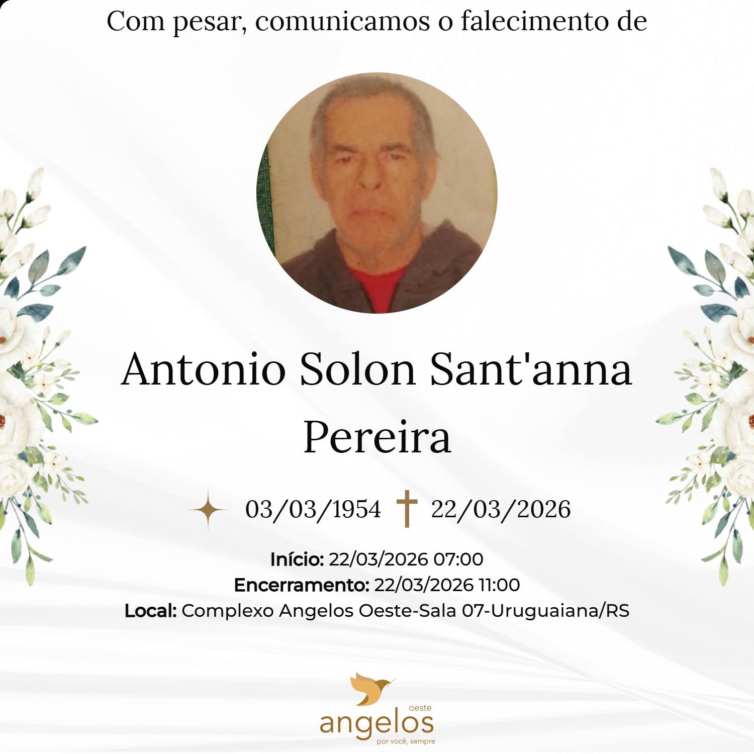 ▪️Sepultamento: 22/03 | 17h | Cemitério Municipal de Uruguaiana
