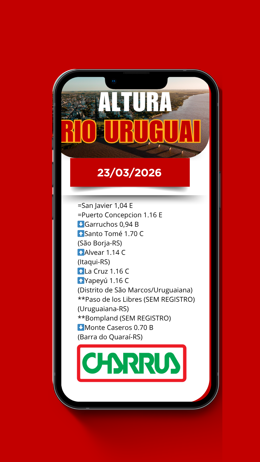 Rádio Charrua: monitoramento diário da altura do Rio Uruguai de San Javier a Monte Caseros