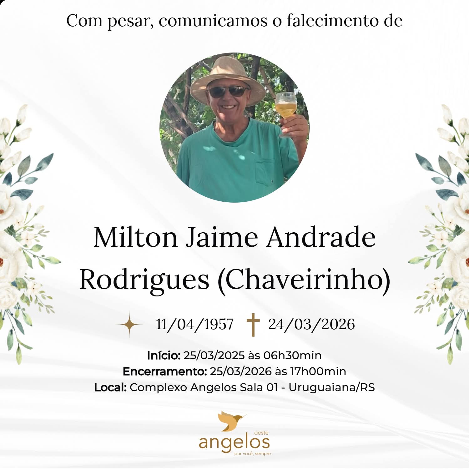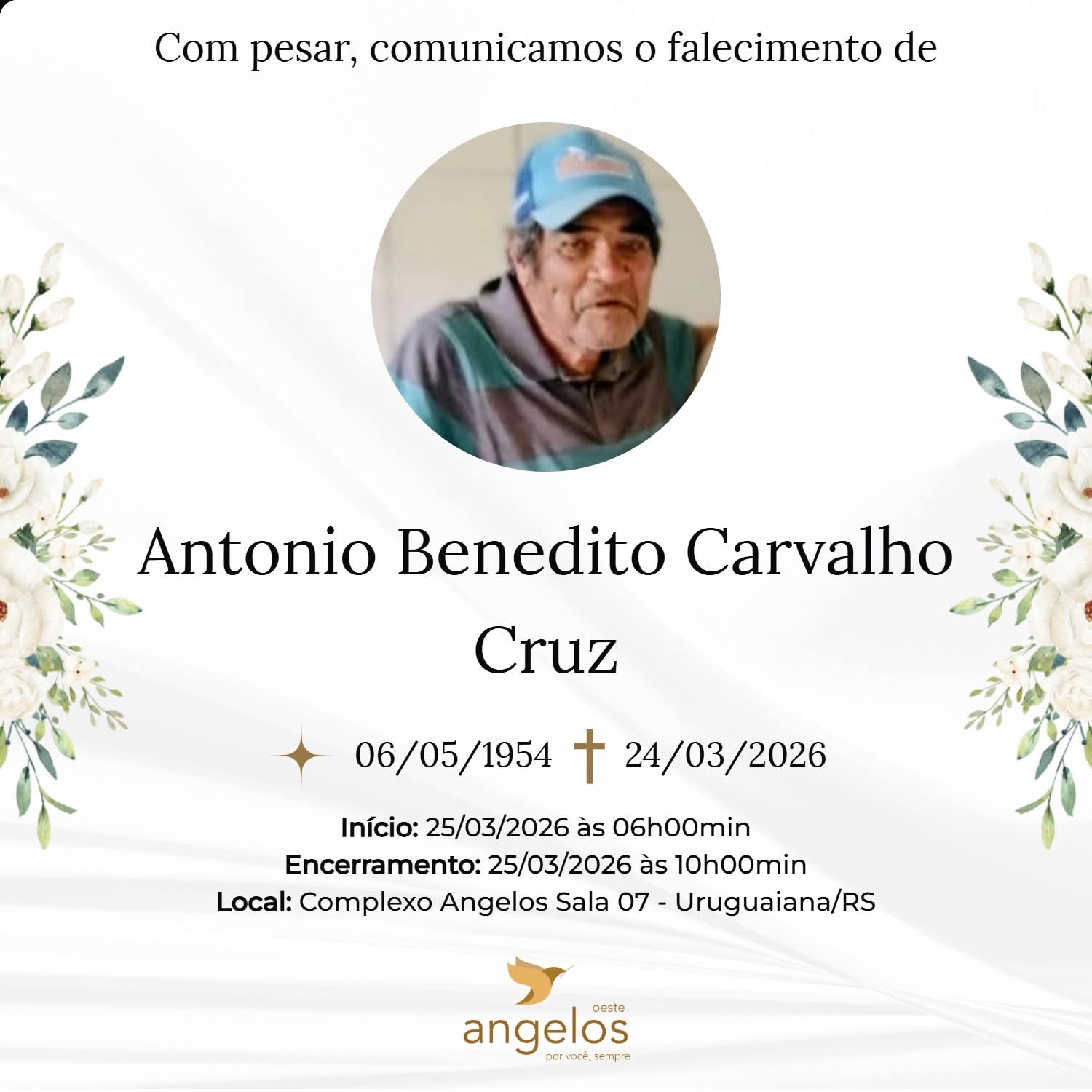 ▪️Sepultamento: 25/03 | 16h | Cemitério Municipal de Uruguaiana