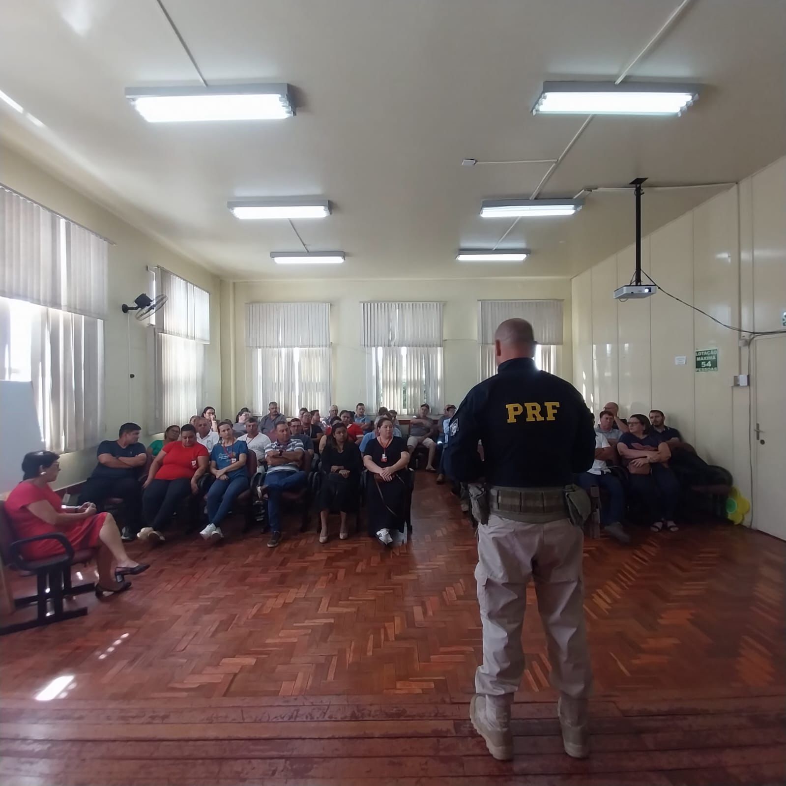 A capacitação foi conduzida por Renato Penha Ruffato, da Polícia Federal, e abordou temas essenciais como legislação vigente, aplicação das normas, documentação necessária e os equipamentos obrigatórios para a prestação do serviço. O momento foi de orientação e alinhamento, com foco na qualificação dos profissionais que atuam diretamente no transporte de estudantes.