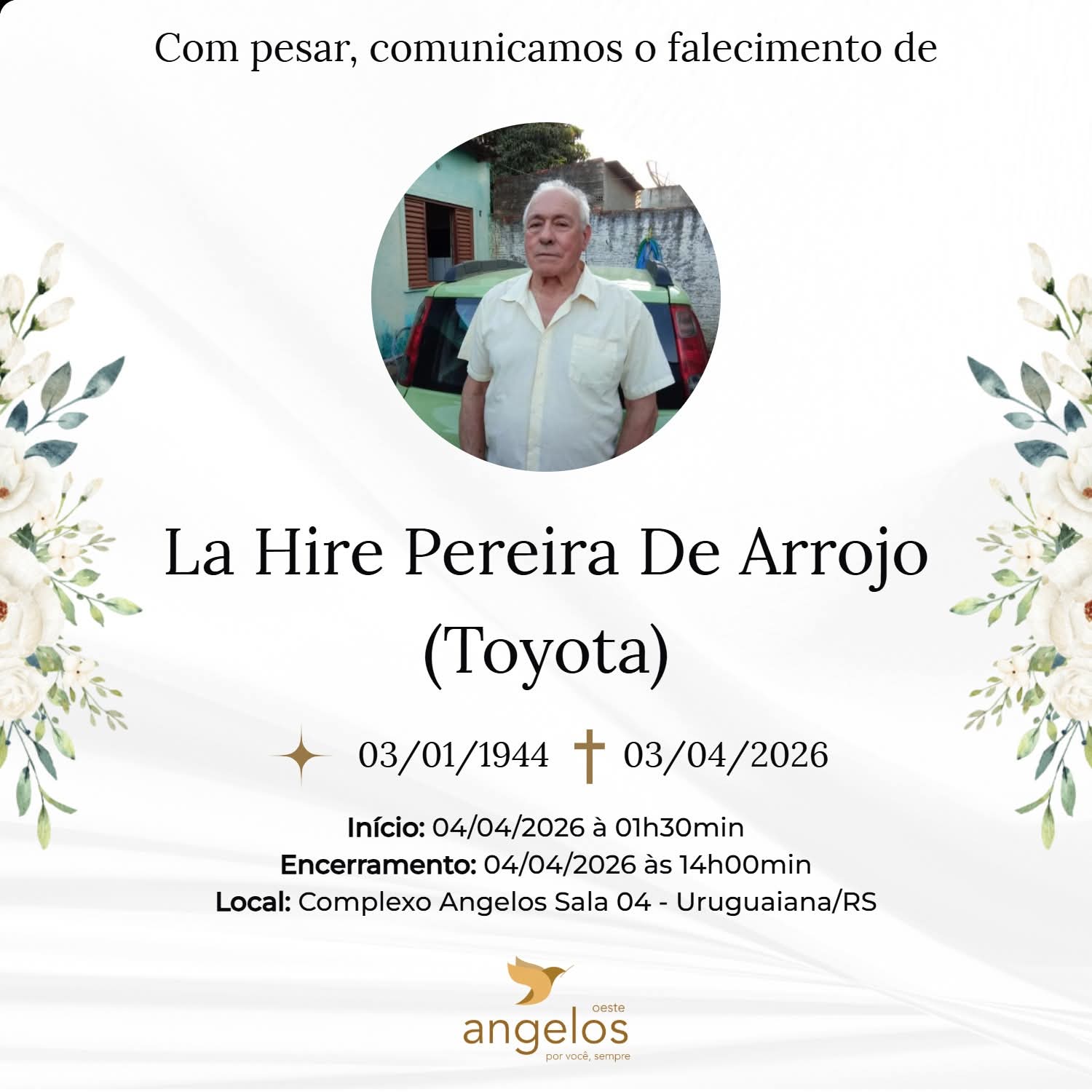 ➡️ Funerária Angelos (óbito da foto >> arraste para o lado)