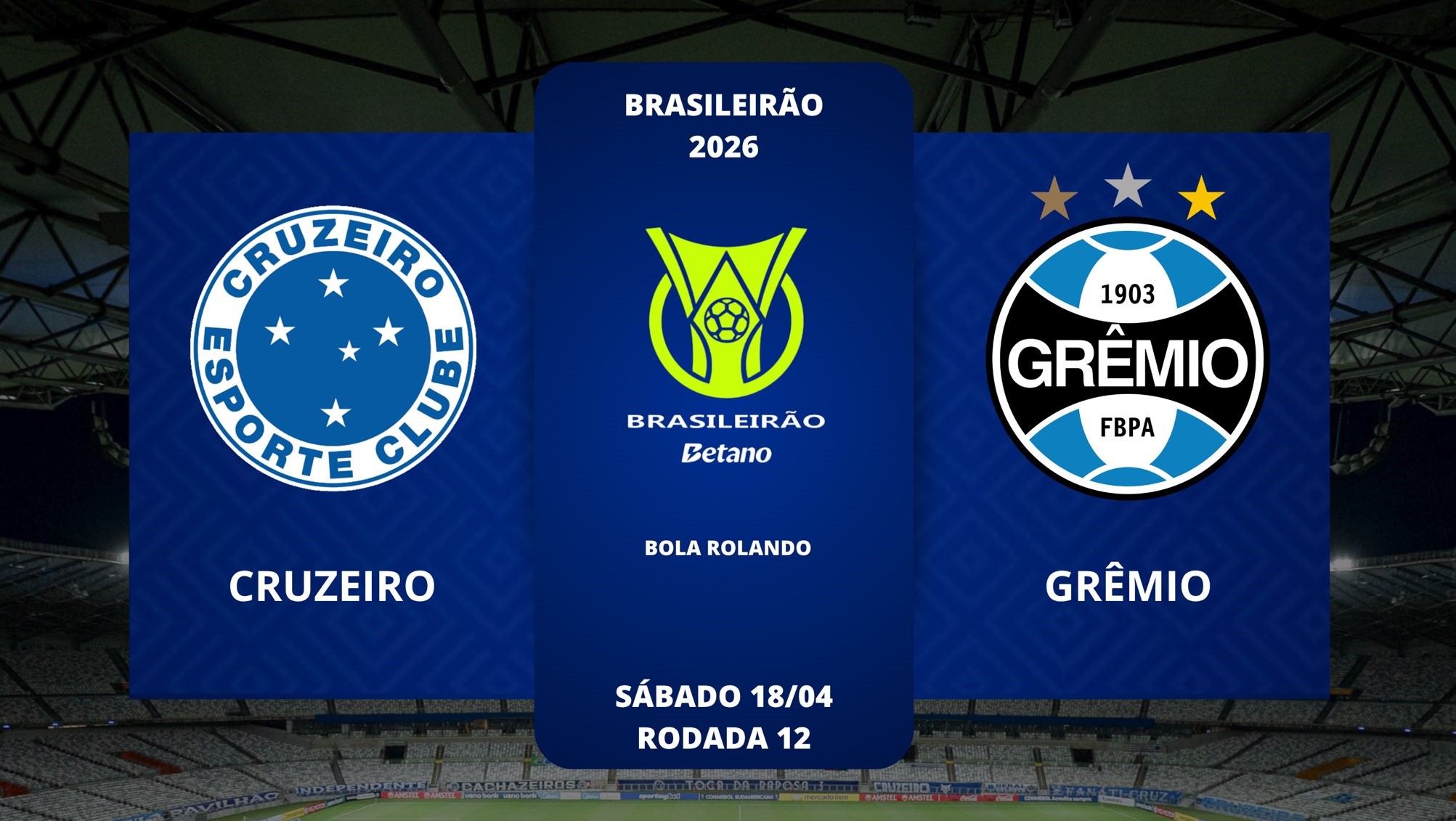 Grêmio e Cruzeiro se enfrentam neste sábado (18), às 20h30min, pela 12ª rodada do Brasileirão 2026. O jogo será no Mineirão, em Belo Horizonte.