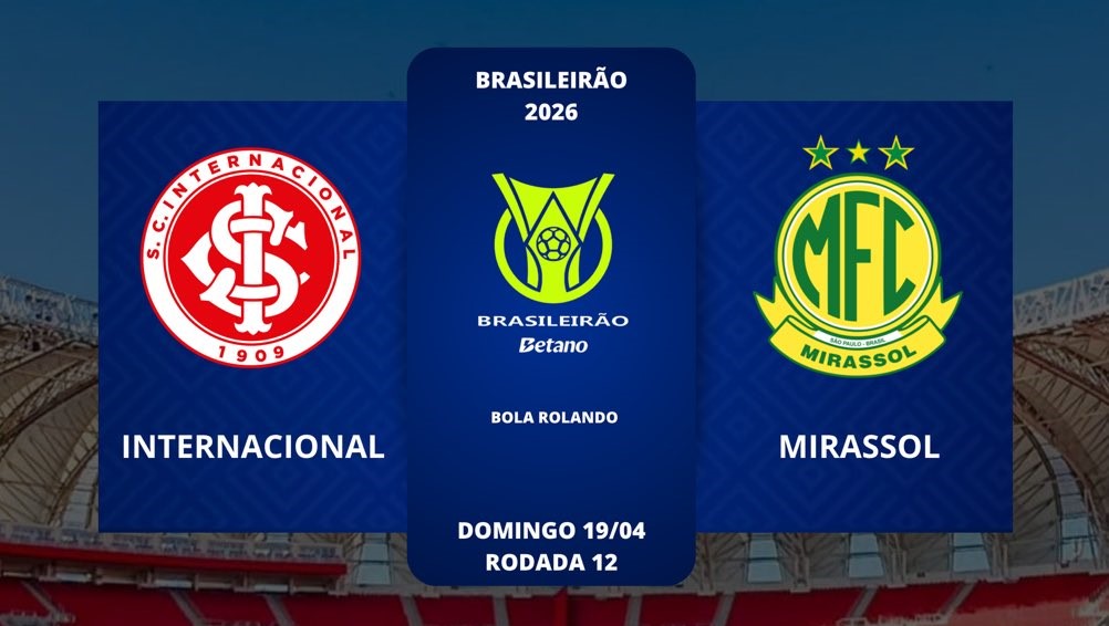 Inter e Mirassol se enfrentam neste domingo (19), às 11h, pela 12ª rodada do Brasileirão 2026. O jogo ocorre no Beira-Rio, em Porto Alegre.