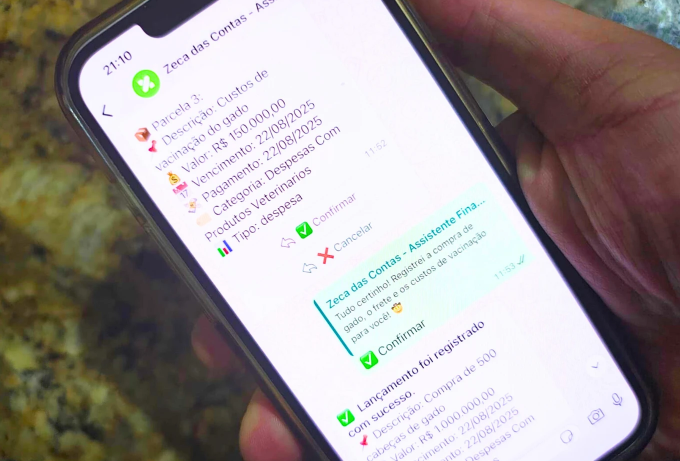 O recurso foi criado por inteligência artificial para simplificar o dia a dia do produtor rural, permitindo lançamentos de receitas e despesas por texto ou áudio, com relatórios automáticos e análises de fluxo de caixa. A proposta é reduzir a lacuna na gestão financeira, especialmente entre pequenos e médios produtores.