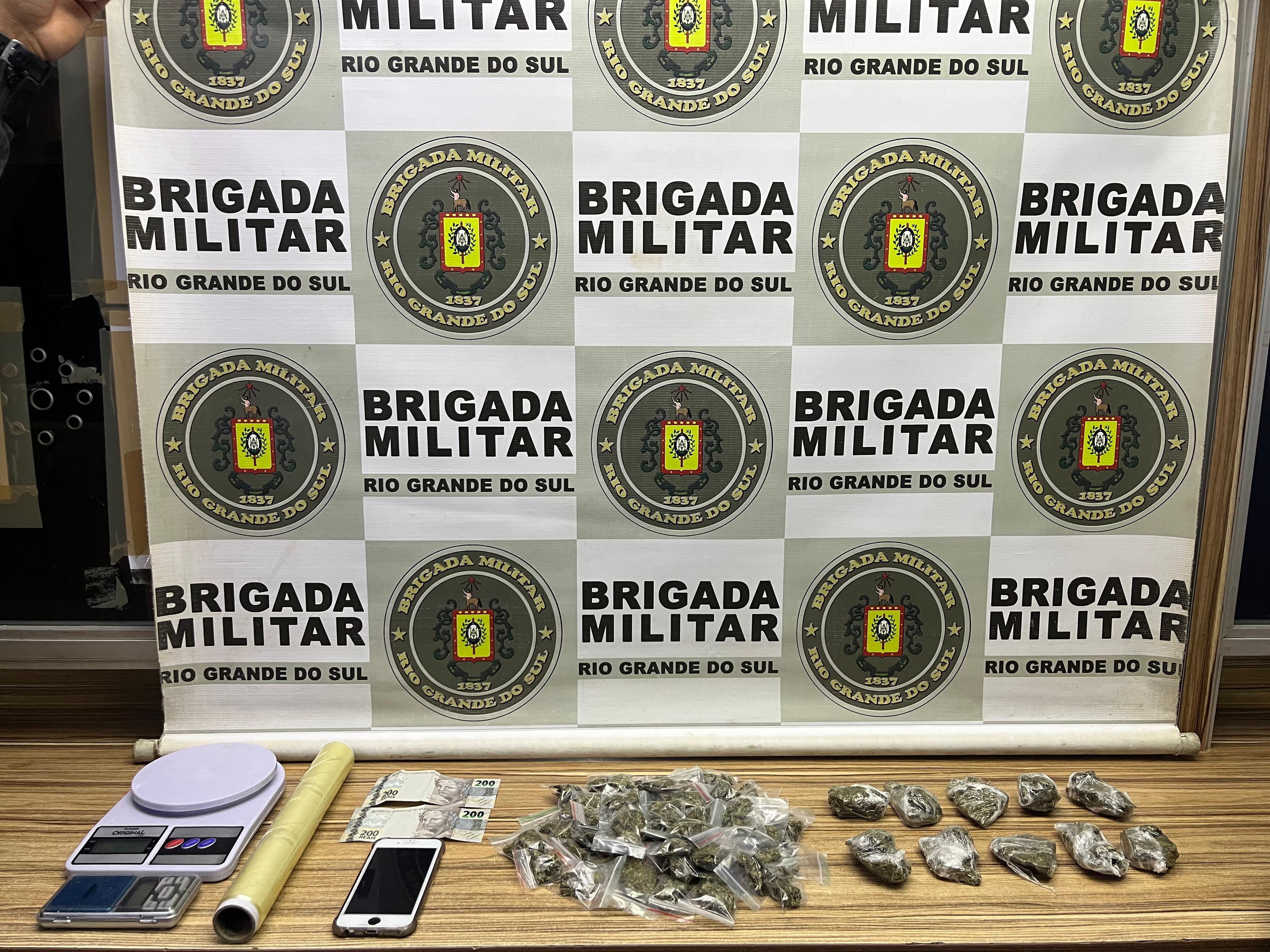 Durante a ação, foram apreendidos, 50 porções de maconha, duas balanças de precisão, um aparelho celular e R$ 400,00.